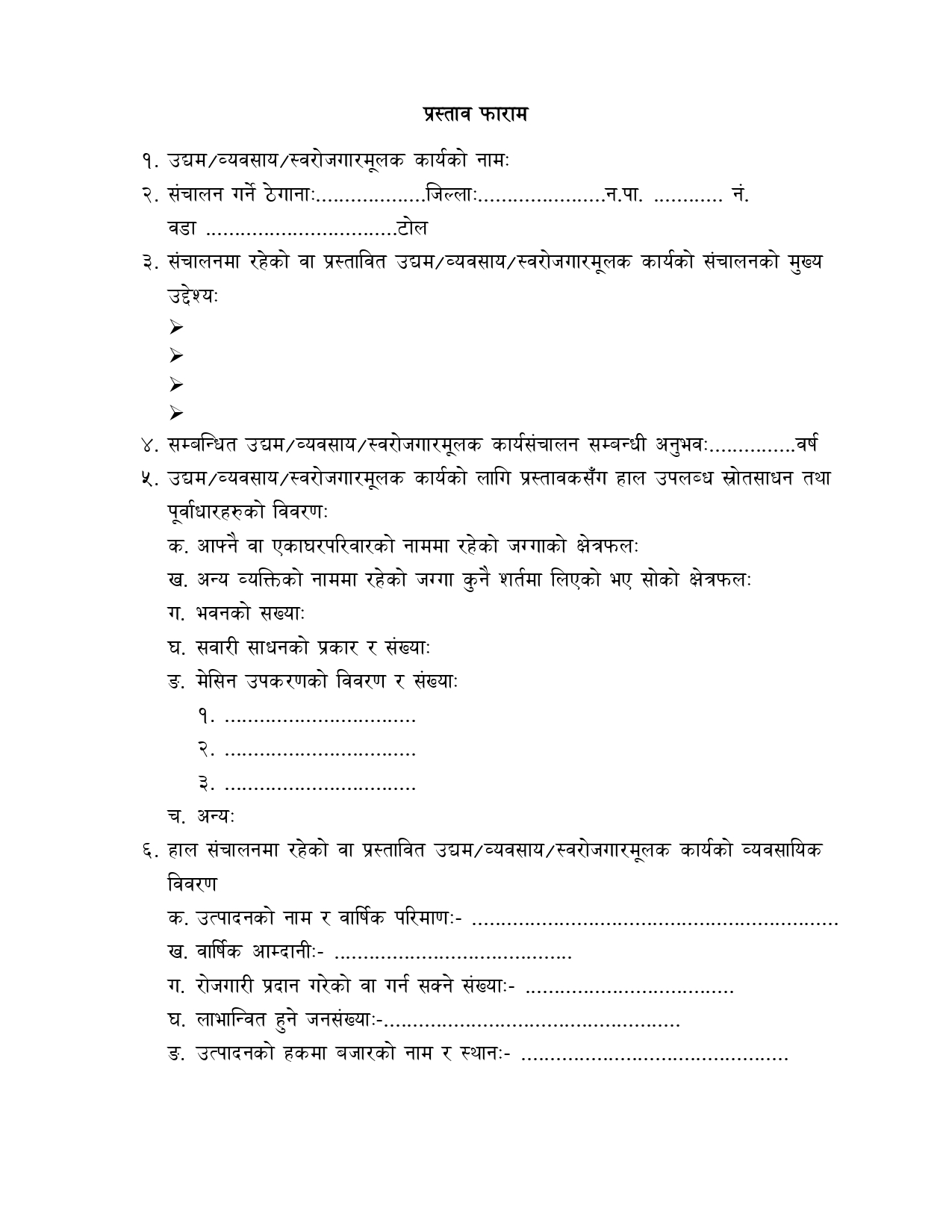 उद्यम, व्यवसाय वा स्वरोजगारमूलक कार्य संचालनका लागि प्रस्ताव पेश गर्ने बारेको सूचना ।