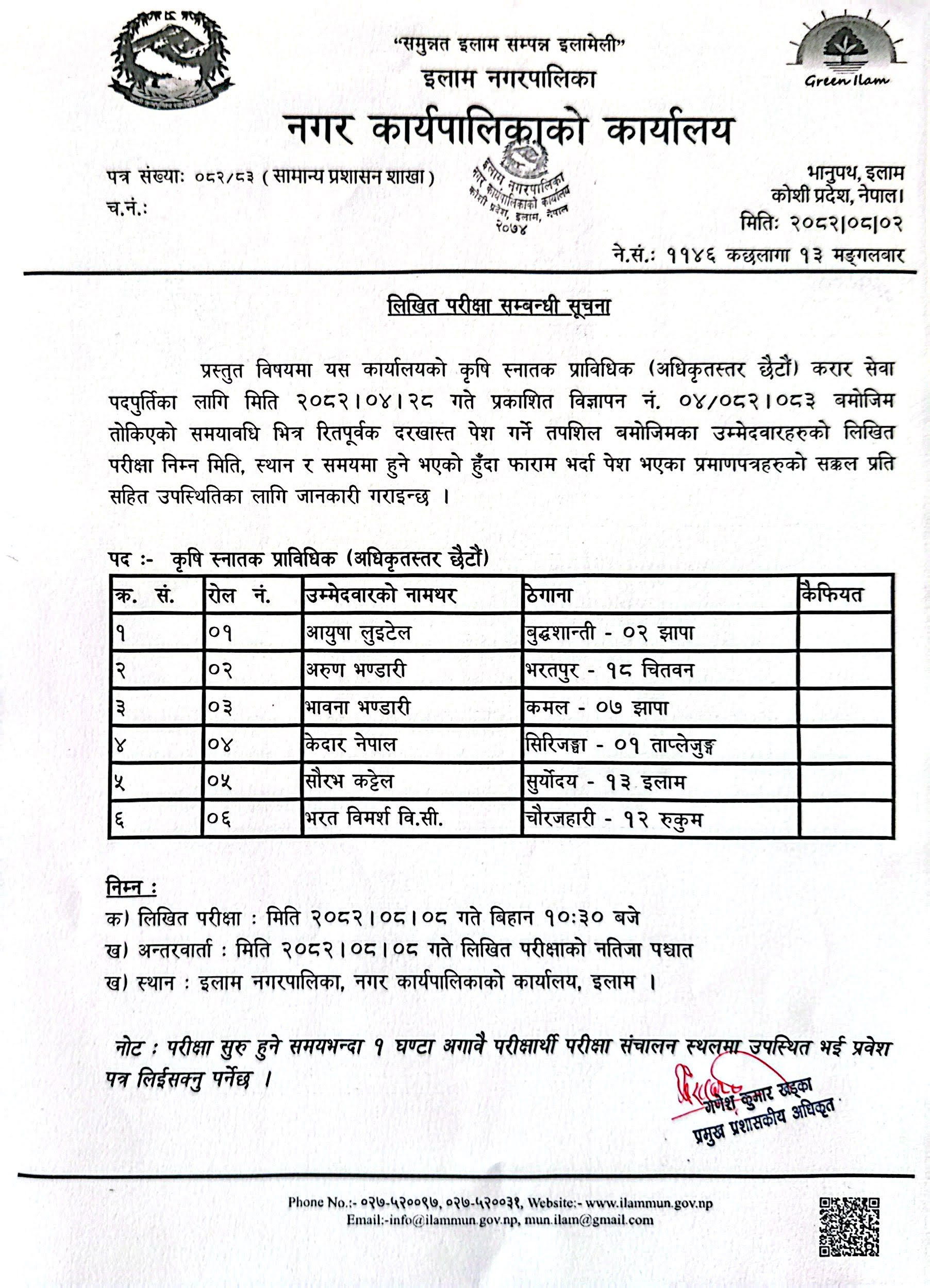 Home » लिखित परीक्षा सम्बन्धी सूचना ।