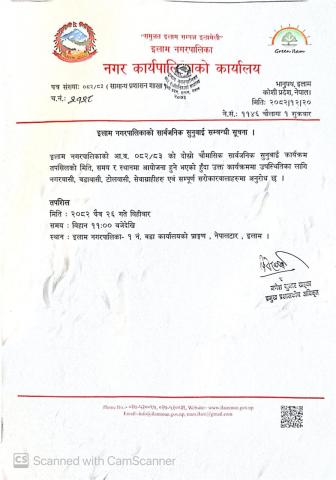 Home » इलाम नगरपालिकाको सार्वजनिक सुनुवाई सम्बन्धी सूचना ।