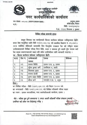 Home » लिखित परीक्षा समबन्धी सूचना ।