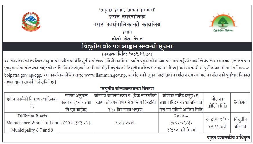 विद्युतीय बोलपत्र आह्वान सम्बन्धी सूचना ।