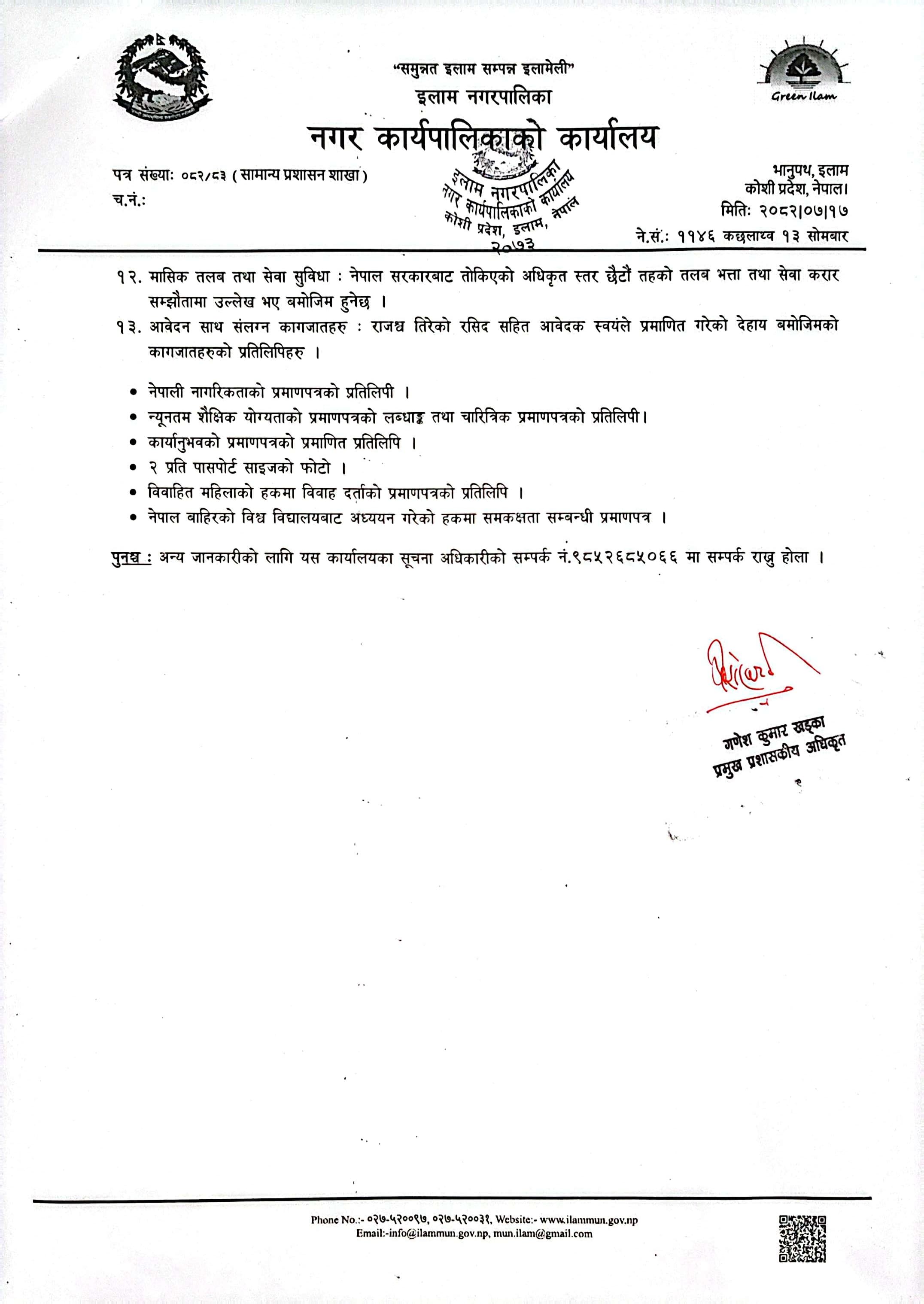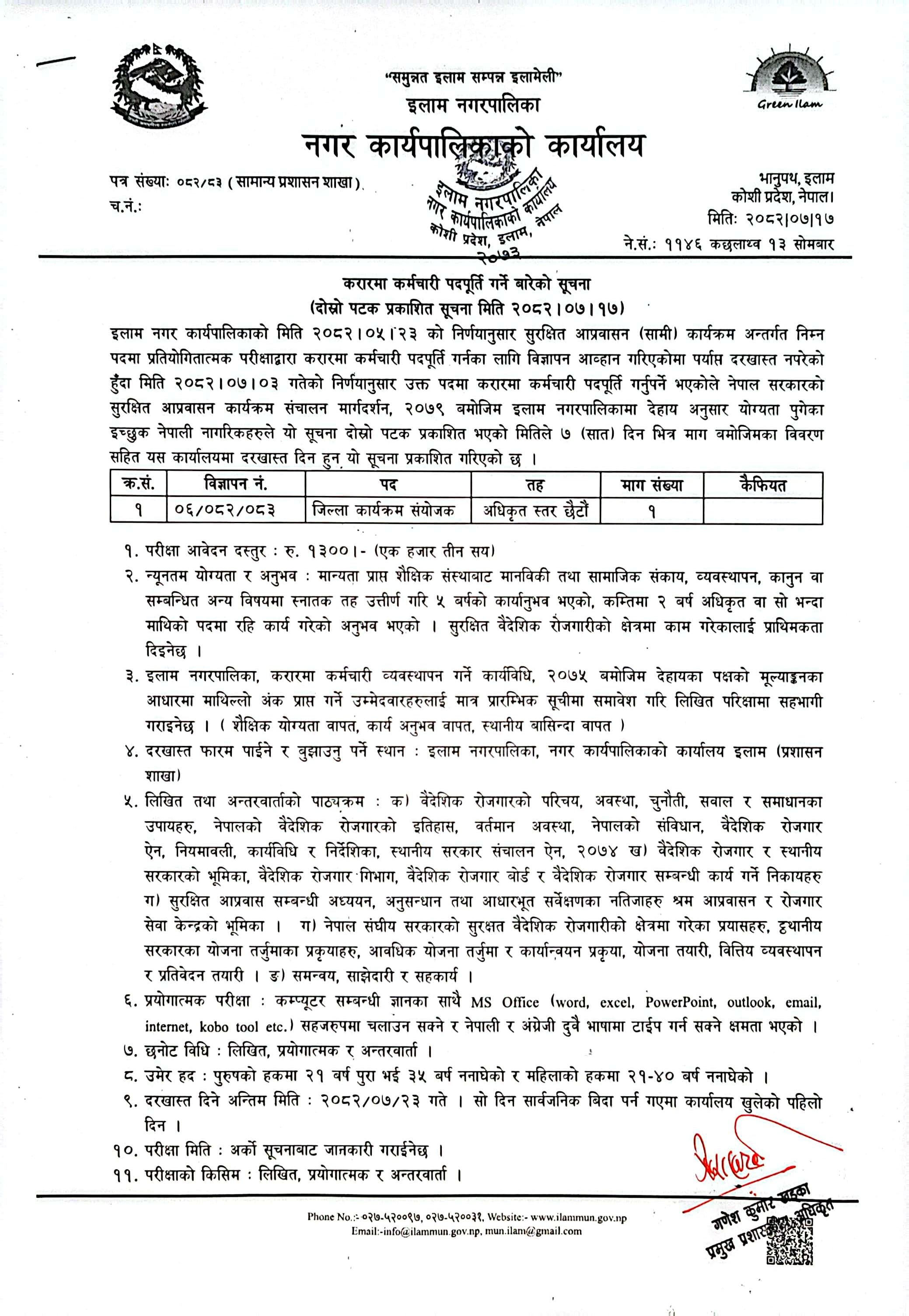 Home » करारमा कर्मचारी पदपूर्ति गर्ने बारेको सूचना ।