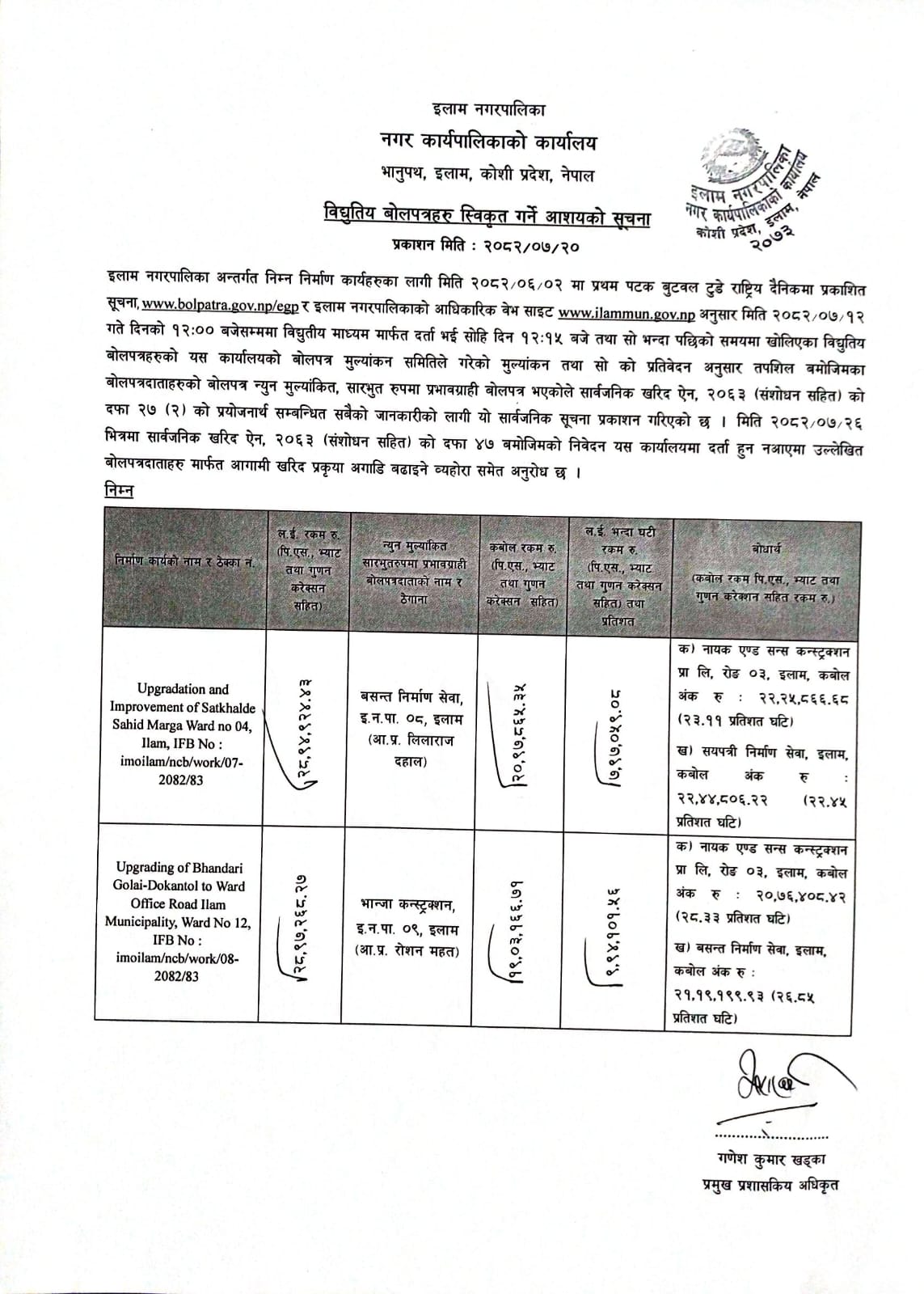 विद्युतिय बोलपत्रहरू स्वीकृत गर्ने आशय सम्बन्धमा ।