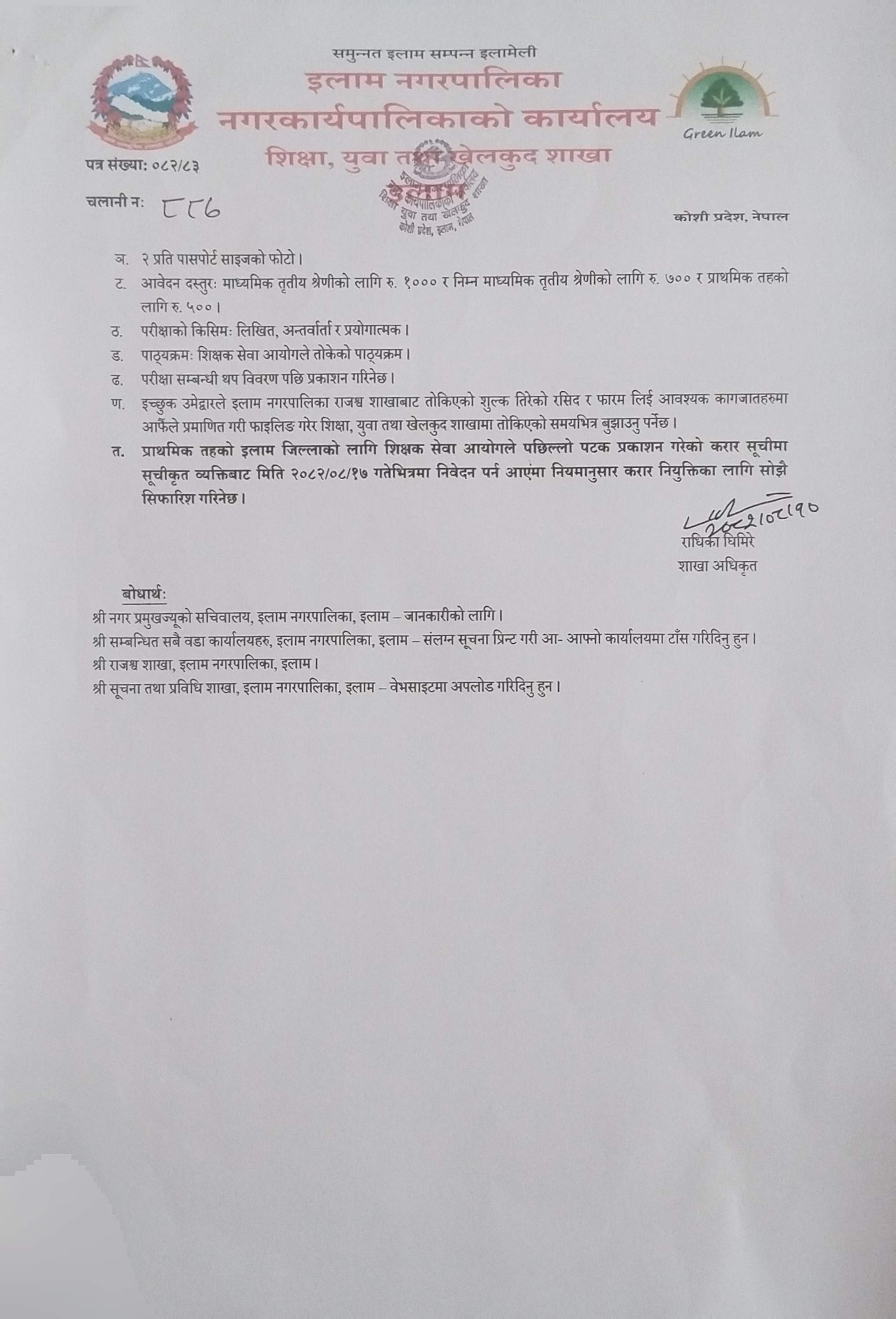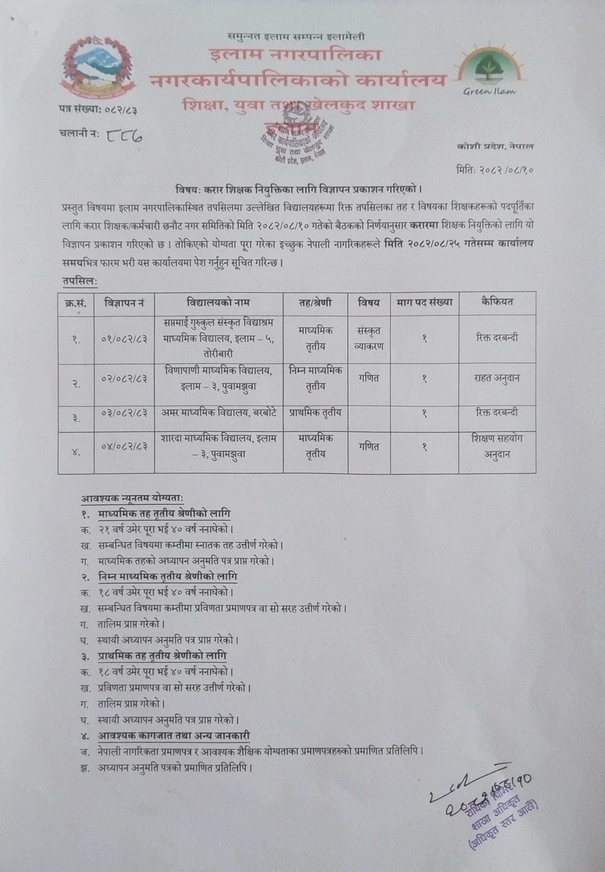 करार शिक्षक नियुक्तिका लागि विज्ञापन प्रकाशन गरिएको सम्बन्धमा ।