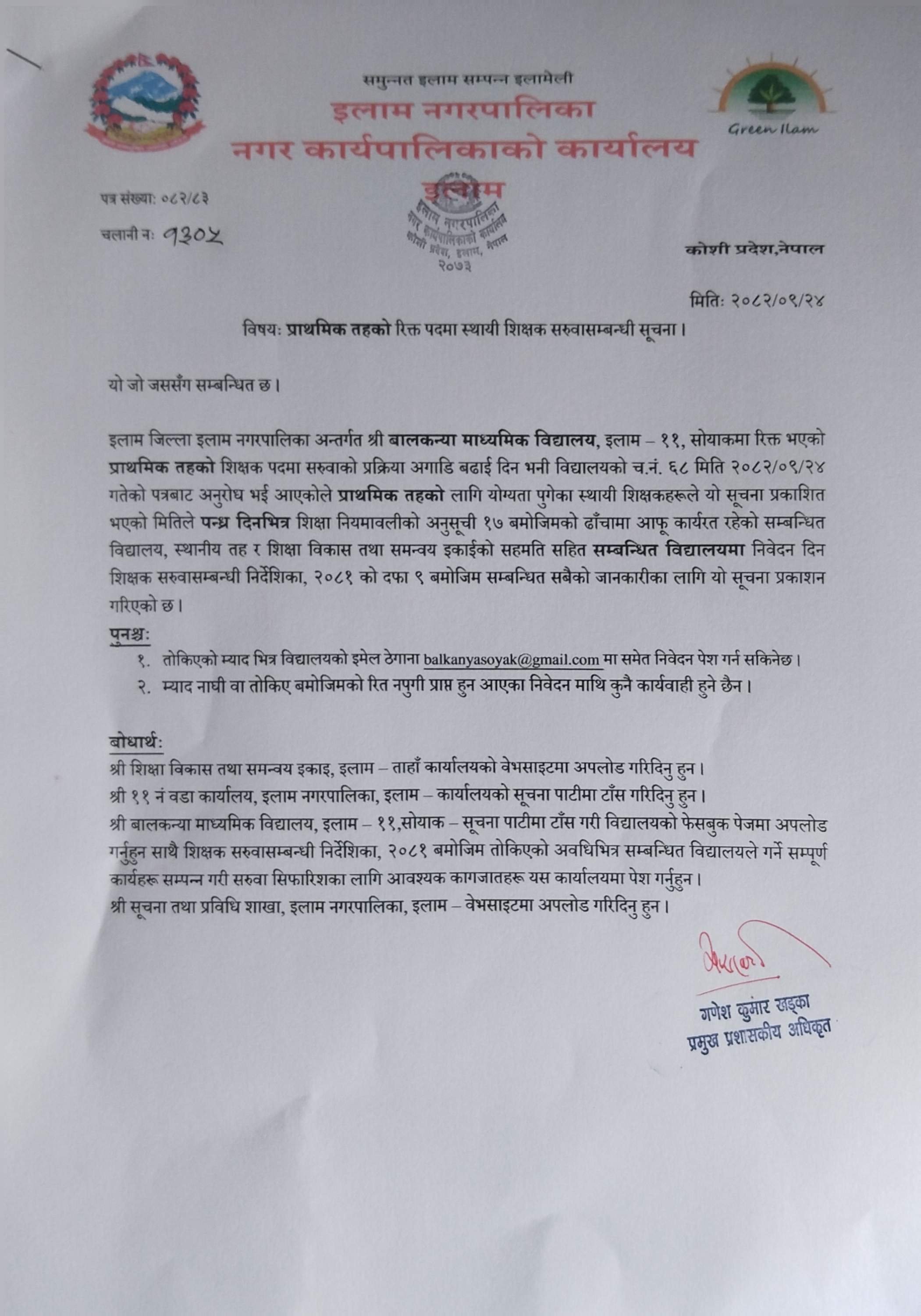 Home » प्राथमिक तहको रिक्त पदमा स्थायी शिक्षक सरुवा सम्बन्धी सुचना ।