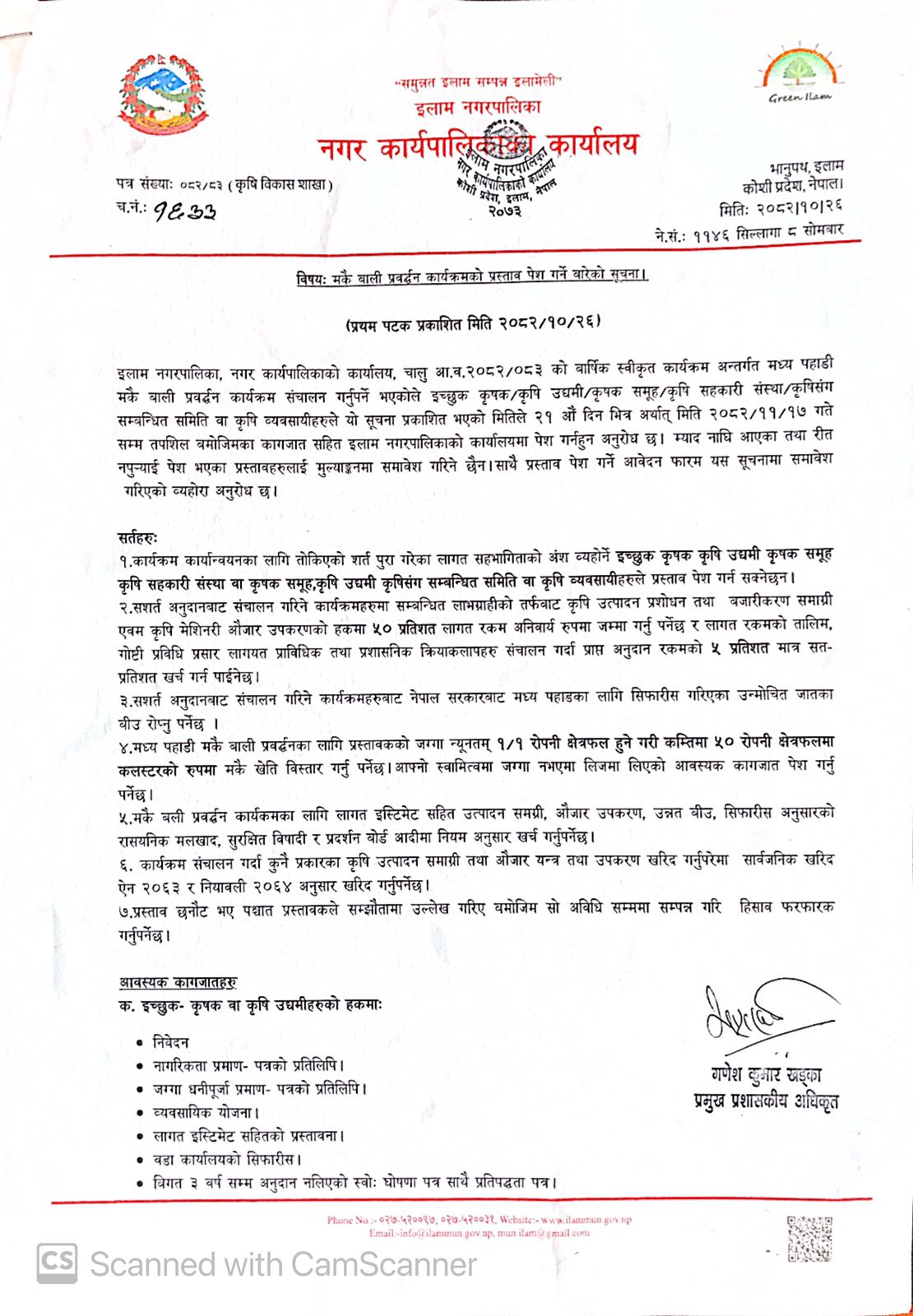 Home » मकै बाली प्रवर्द्धन कार्यक्रमको प्रस्ताव पेश गर्ने बारेको सूचना ।