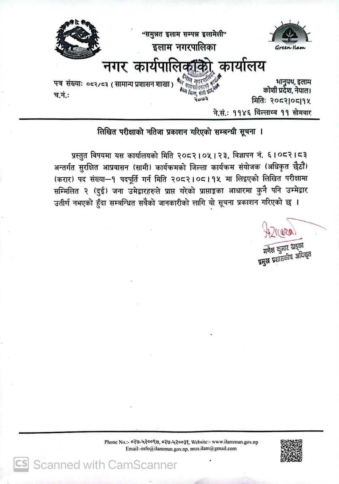 Home » लिखित परीक्षाको नतिजा प्रकाशन गरिएको सम्बन्धी सूचना ।
