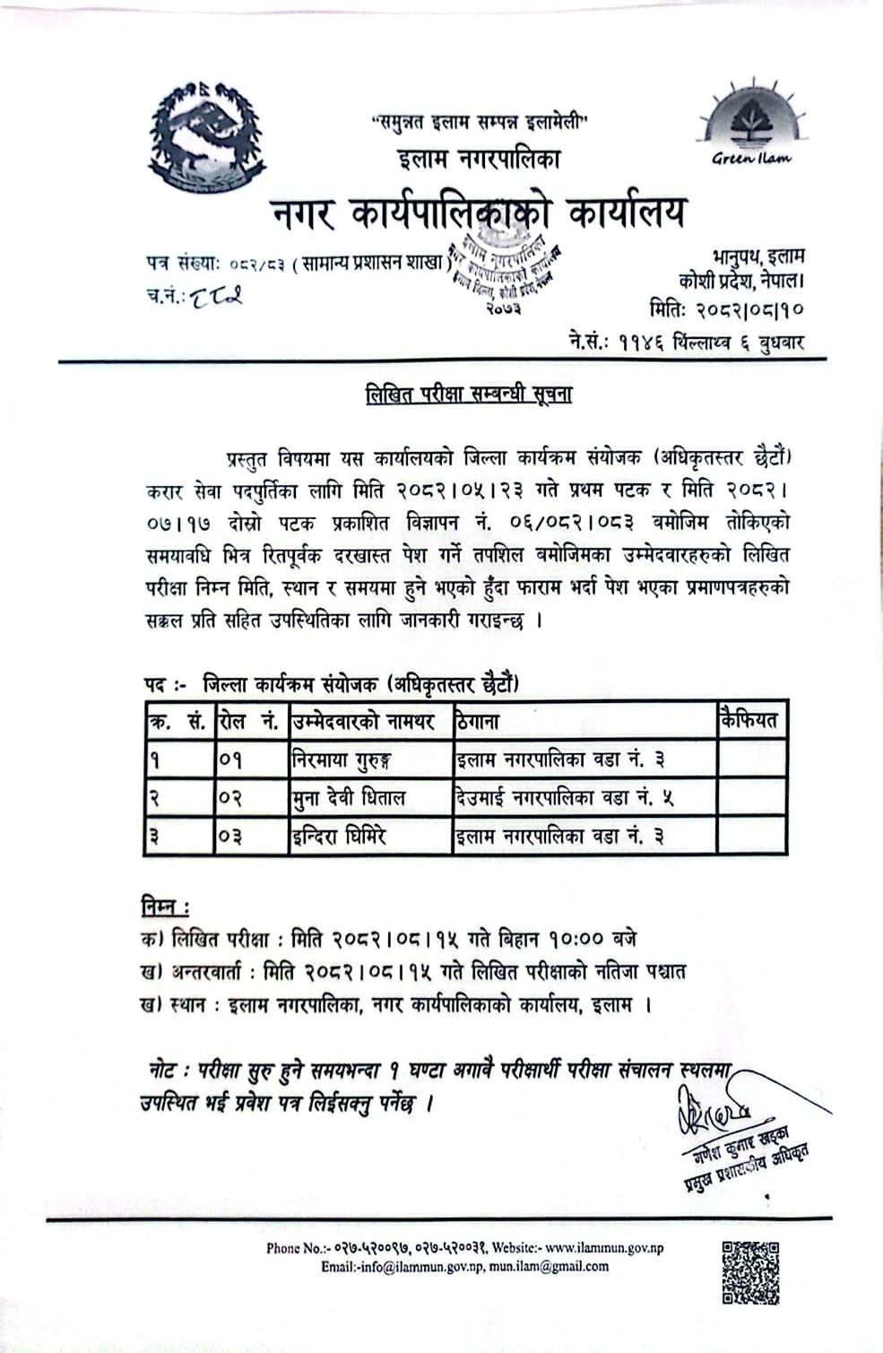 Home » लिखित परीक्षा सम्बन्धी सूचना ।