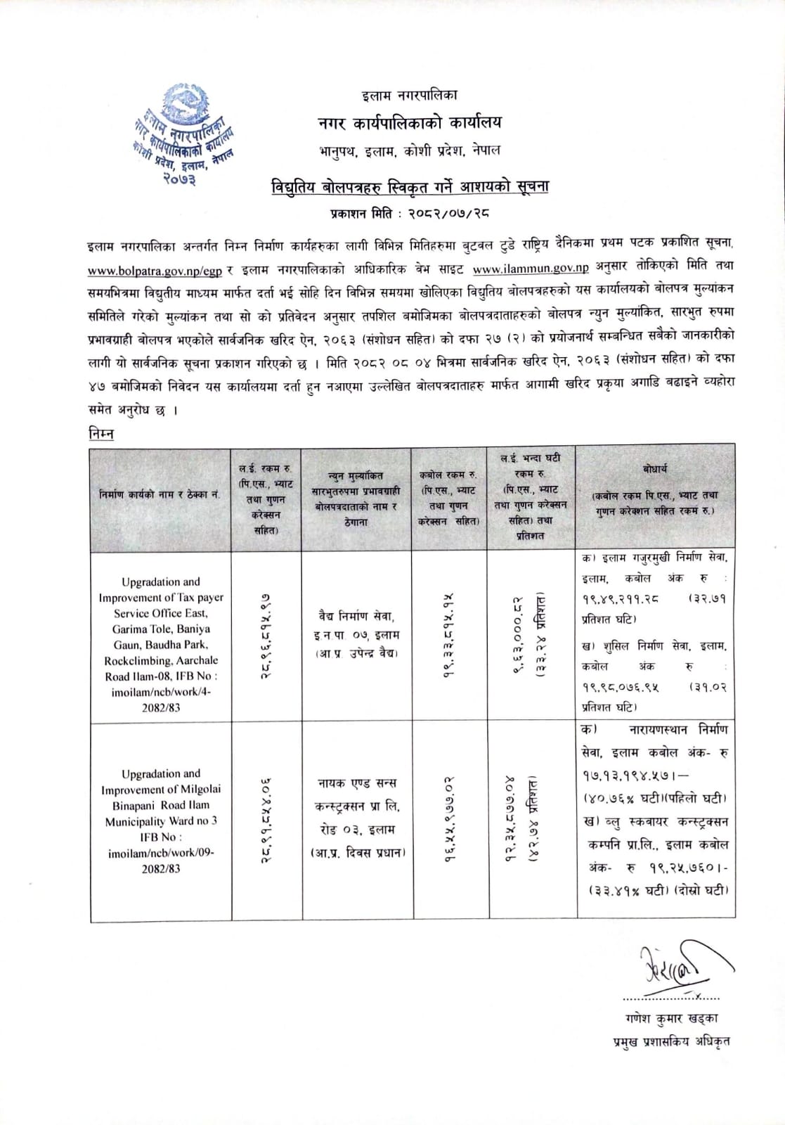 विद्युतिय बोलपत्रहरू स्वीकृत गर्ने आशय सम्बन्धमा ।