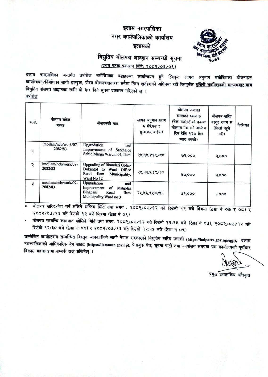 Home » विद्युतिय बोलपत्र आव्हान सम्बन्धी सूचना ।