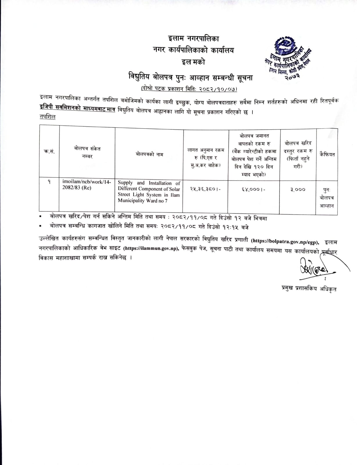 Home » विद्युतिय बोलपत्र पुन: आव्हान सम्बन्धी सूचना ।