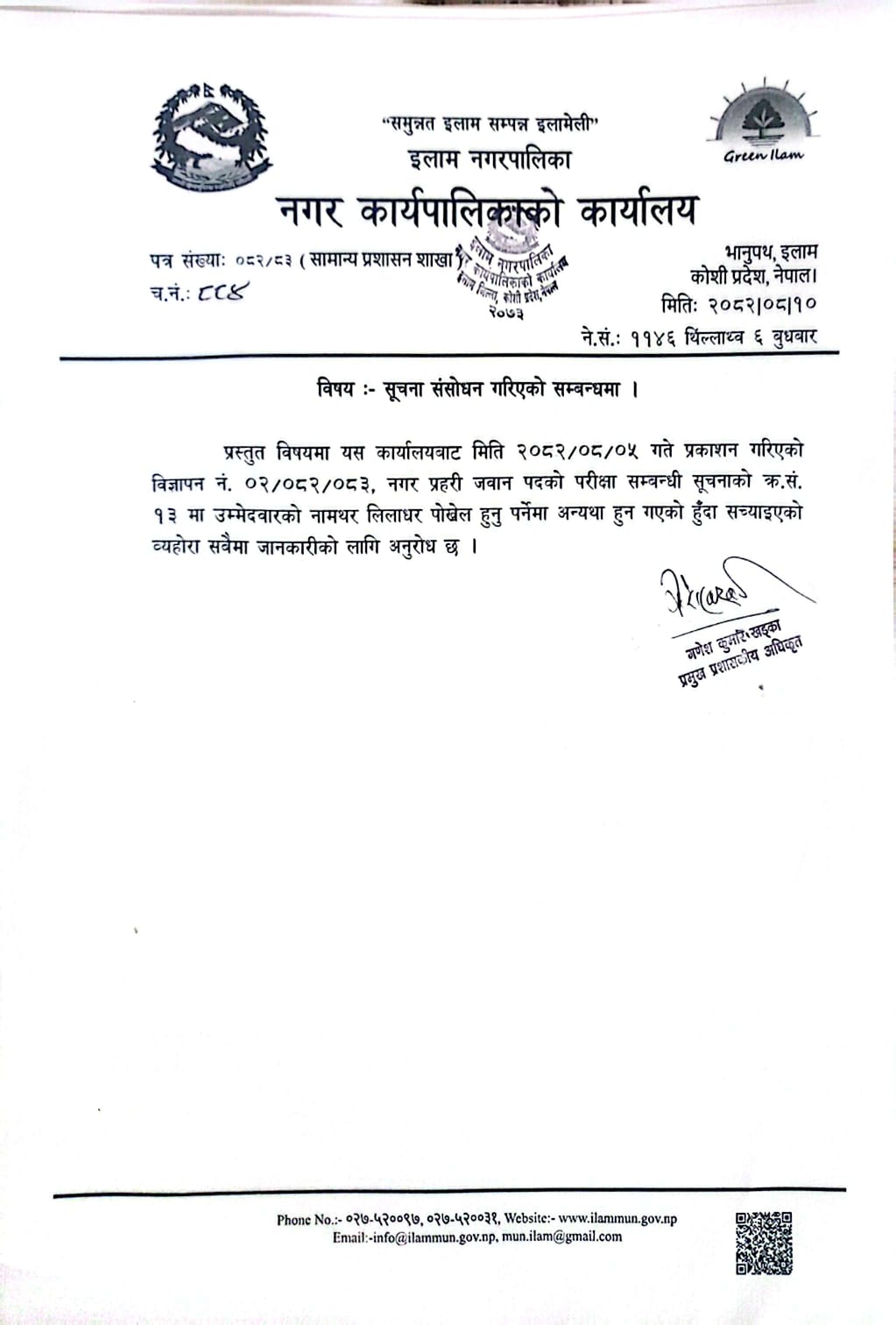 Home » सूचना संसोधन गरिएको सम्बन्धमा ।